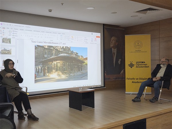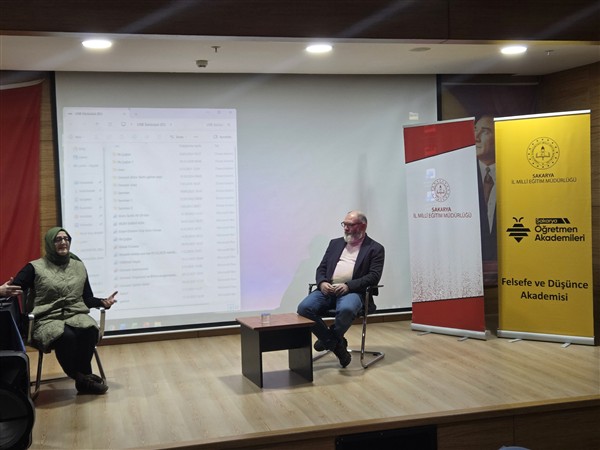 Bakanlığımız öncülüğünde başlatılan Sakarya Öğretmen Akademileri kapsamında açılan Felsefe ve Düşünce Akademisi'nin bu haftaki dersi, "Osmanlıda Eğtim Tarihi" başlığı altında, Prof. Dr. Bedizel AYDIN ve Doç. Dr. Tufan ÇÖTOK rehberliğinde Şehit Erol Olçok Anadolu Lisesi Cep Salonunda gerçekleştirildi.